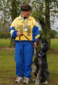 Petra Krämer mit Rita von Elberfeld wurden auf der DM-FH in Horst / Holstein Deutsche-Vizemeisterin bei den Fährtenhunden.