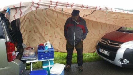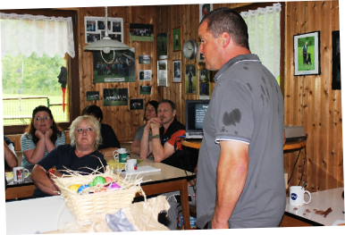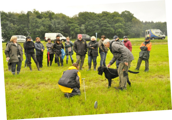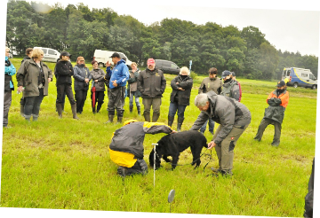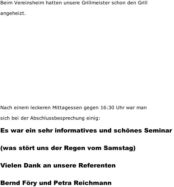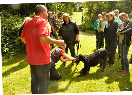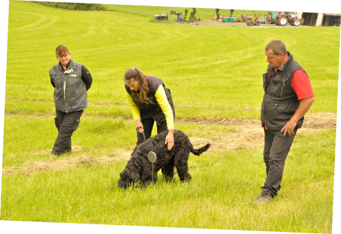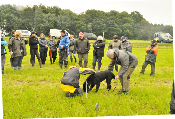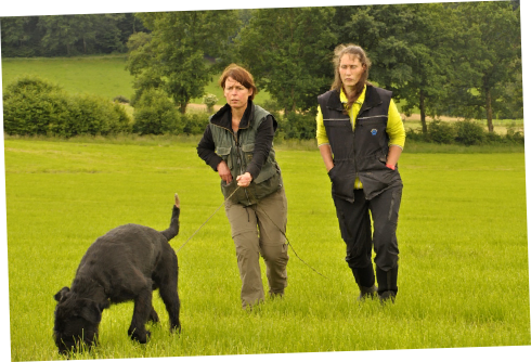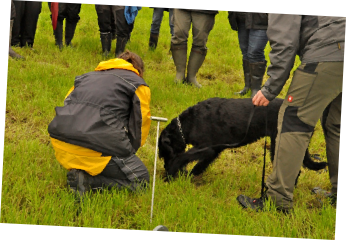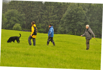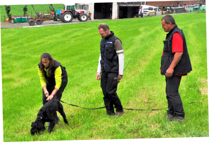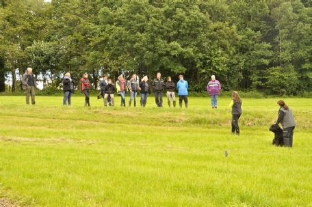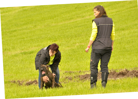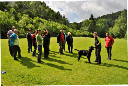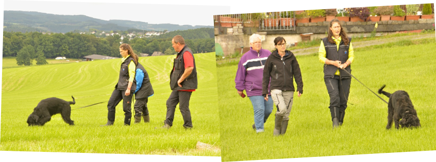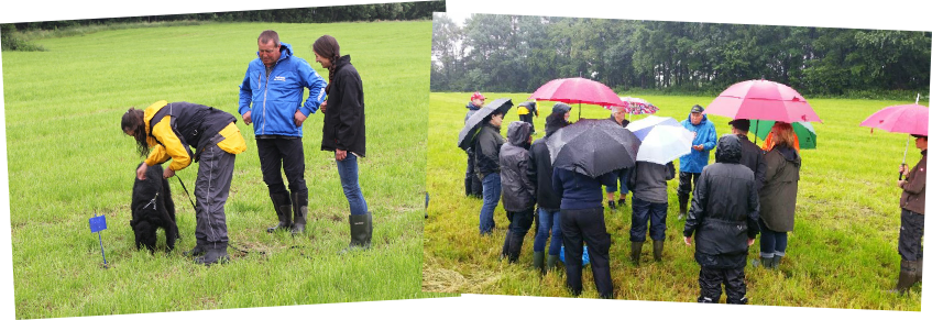 Aktualisiert  01.07.2016 Das Fährtenseminar begann am Samstagmorgen  mit der Theorie, die von Bernd Föry   kurzweilig präsentiert wurde. Petra konditioniert Aisha auf die Suche nach einem versteckten Motivationsgegenstand Nach der Mittagspause fuhren alle ins   Fährtengelände, um das Gehörte in   der Praxis umzusetzen.      Wenn man Ideen hat, kann einem   selbst ein sehr ergiebiger Schauer  nicht die gute Laune verderben. Mit der abschliessenden Fährte endete der Samstag Am Sonntag zeigte uns Petra mit Hataro wie  wie die Gegenstandsarbeit aufgebaut werden kann. Danach  probierte Baila die Gegenstandsarbeit Im Fährtengelände suchte jeder teilnehmende Hund    noch zwei Fährten.