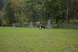 Petra mit Rita in der Vorbereitung zur Unterordnung.