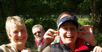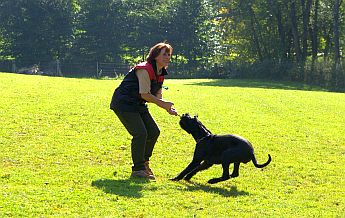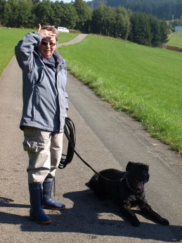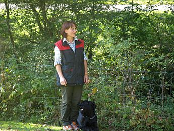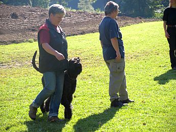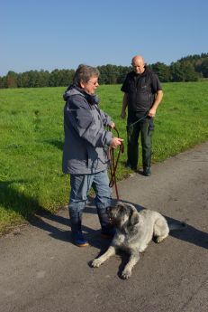 Rita und Petra bei der Prüfung des Umweltverhaltens für die Körung.
