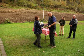 Ralf bedankt sich im Namen der ganzen Orts- gruppe bei Wilhelm für die gute Küche, die er seit Jahren zusammen mit Lisbeth für die Prüfungen betreibt und für den ständigen und unermüd- lichen Einsatz bei allen anfallenden Arbeiten.