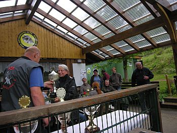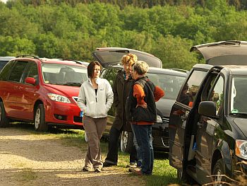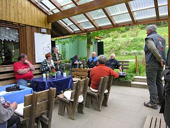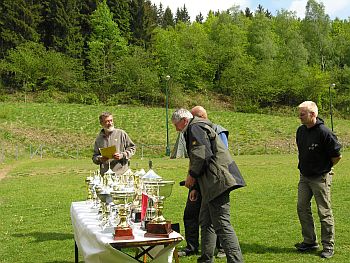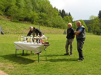 Die Wartezeit während der Fährtenliegezeit wird durch kleine Gespräche am Rande sehr kurz.