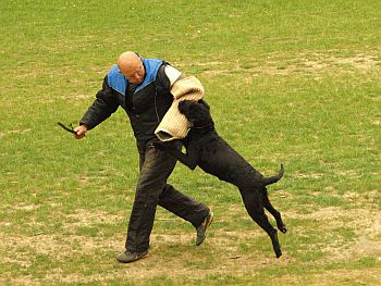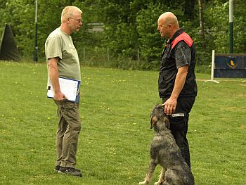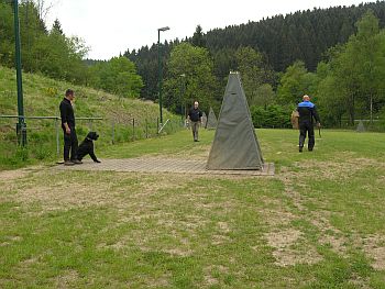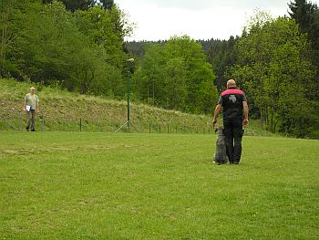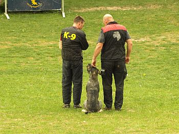 Zum Abschluss des ersten Tages wurden dann noch die Hunde im Schutzdienst geführt und bewertet.