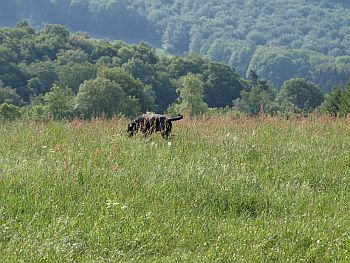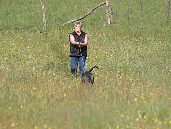 Margit mit ihren "Veteran" Jackomo; immer noch ein absolut sicherer Sucher.