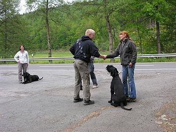 Nach der Unterordnung auf dem Platz ging es dann mit dem Außenteil der Begleithunde weiter..........