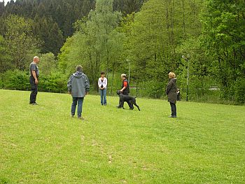 Nach der Fährtenarbeit ging es dann auch gleich mit den Unterordnungen der Begleithunde weiter.