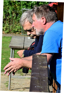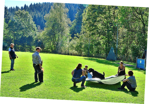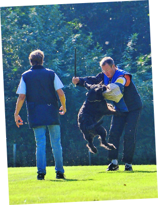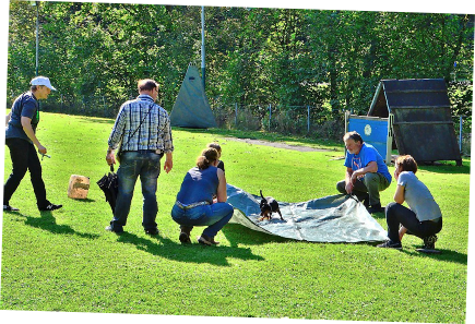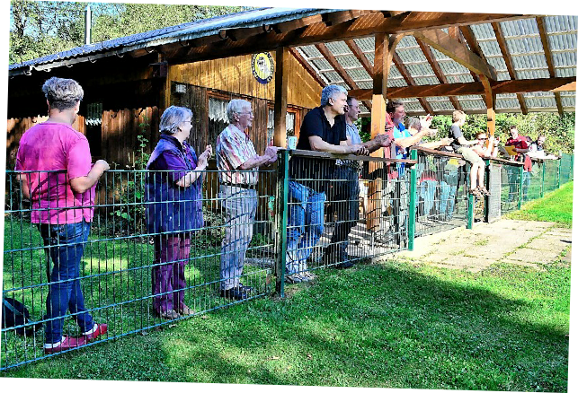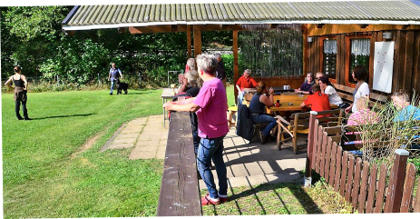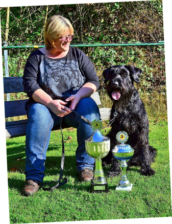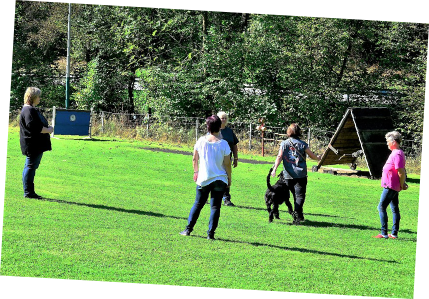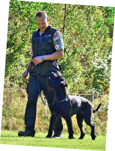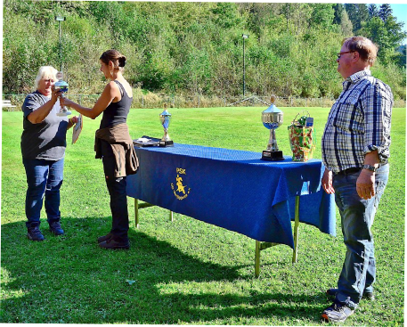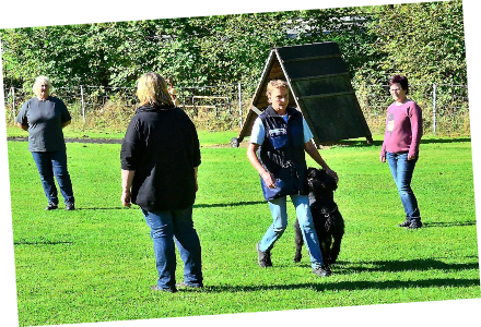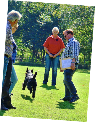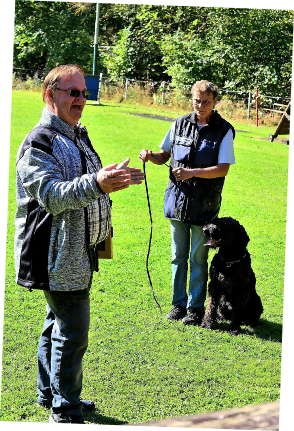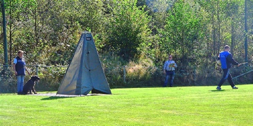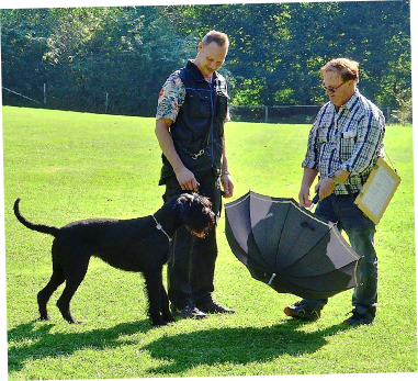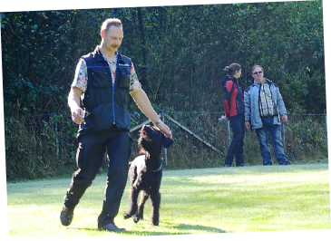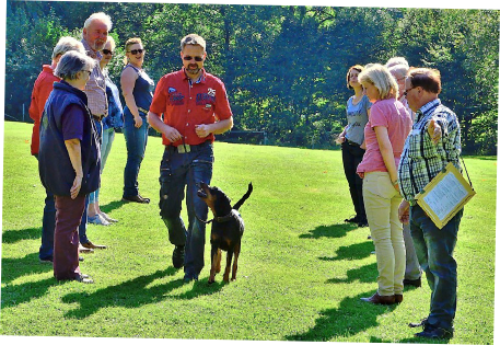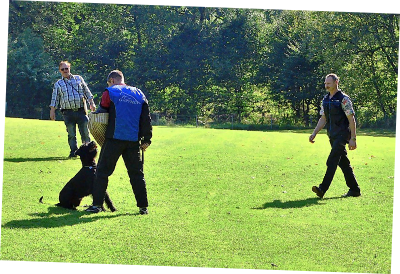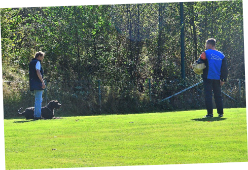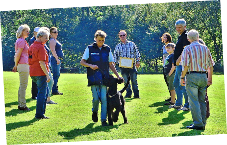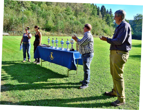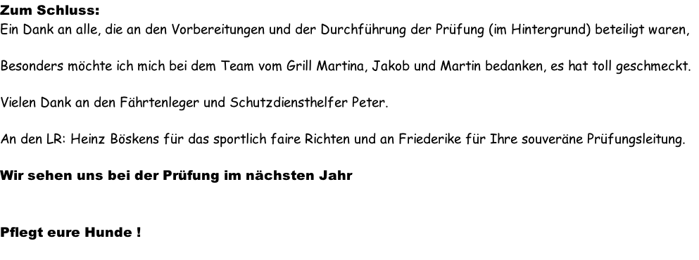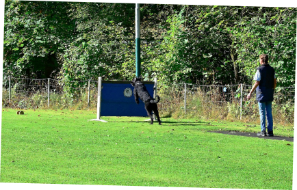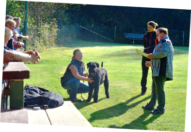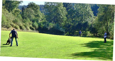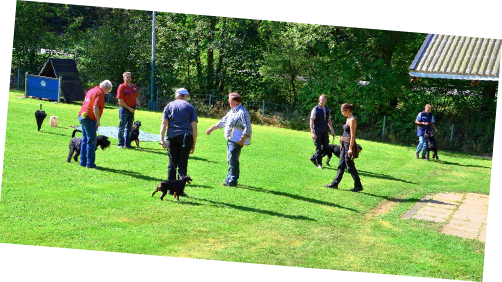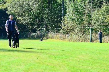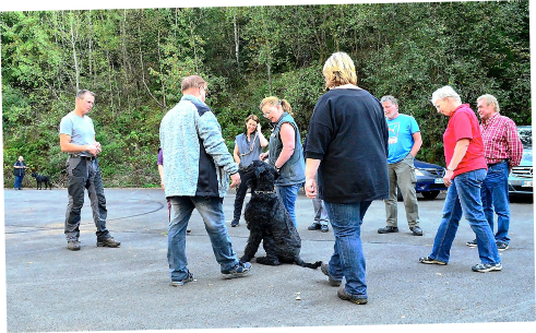 Aktualisiert  14.10.2016 Nachdem alle Fährten am Morgen abgesucht waren,  wurde die Prüfung auf dem Übungsplatz fortgesetzt.  Als Erste startete Nicole mit Gaitano mit der Unterordnung für die BH und   Sascha mit Baila vom Bichelbach unterstützten die beiden als „Blindenhund“. Ulli und Annakind (Anaconda vom Wetzlarer Land) bei der Unterordnung für die IPO 2.  Dieter und Aisha vom Bichelbach als „Blindenhund“ werden vom   Leistungsrichter Heinz Böskens und der Prüfungsleiterin Friederike Welter kritisch beobachtet. Nicole und Gaitano Latur vom Haus Usti beim Verkehrsteil der BH.  Anschließend wurde gratuliert= Bestanden ! ! Ulli mit Vranci vom Beisetal bei der Unterordnung   zur IPO 3 zusammen mit Martina und   Barack vom Leiselfeld als „Blindenhund“. Das Team vom Grill: Jakob und Martin   bei der Vorbereitung zum Mittagessen.   Kalle hat alles im Blick. Vor der Mittagspause noch der Schutzdienst von Ulli mit Anaconda für die IPO 2  und Ulli mit Vranci für die IPO 3. Für die Riesenschnauzer folgte nun noch der Kör- Schutzdienst  um die Härte, Belastbarkeit und die Triebveranlagung zu überprüfen. Siegerehrung:  Nicole freut sich immer noch über die bestandene BH Fachsimpeln am Rande Der Zuschauer mit eigener Loge. Zur Körung versammeln sich alle Kör- Hunde bei der Chipkontrolle und zur Überprüfung der Schuss- Schallgleichgültigkeit. Anschließend wurden die Hunde einzeln in einer Unterordnung mit und ohne Leine vorgestellt   und das Temperament, die Führigkeit und die Arbeitsfreude überprüft. Brigitte und der   Zwergpinscher Solfarino Jeronimo Claudia mit dem   Schnauzer schwarz   Mittico Khagrass Bernd-Michael und der Deutsche Pinscher schwarz rot   Hardy von der Schwalmaue Ulli und der Riesenschnauzer schwarz  Anaconda vom Wetzlarer Land Sascha und der Riesenschnauzer schwarz  Baila vom Bichelbach Monika hat die erste FH 2 mit Alpha bestanden Kirsten freut sich über eine „Sehr Gute“ FH 2 mit Ella und   über den Wanderpokal der OG Olpe- Biggesee Alle fünf Hunde wurden als körfähig beurteilt.