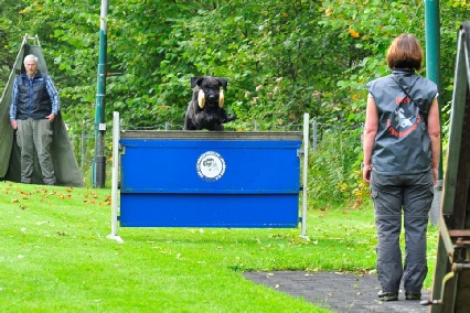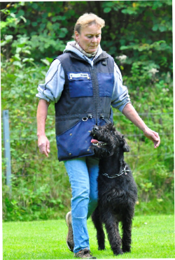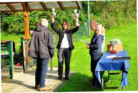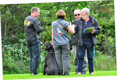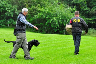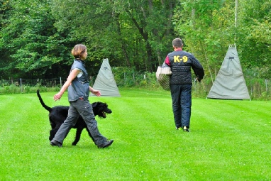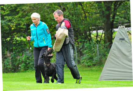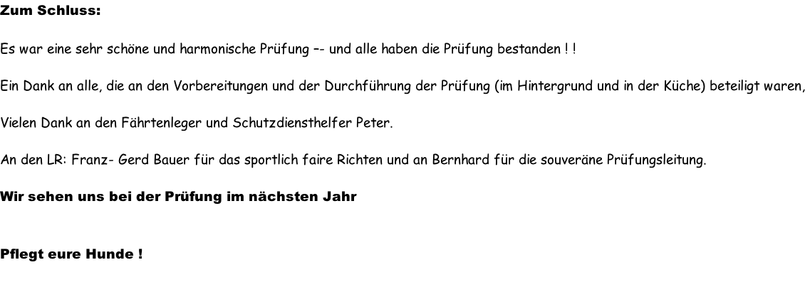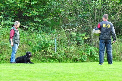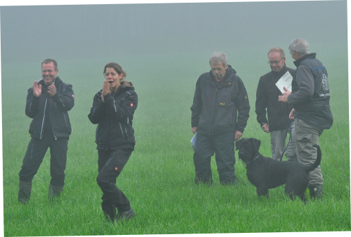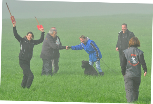 Aktualisiert  03.10.2017 Das Sauerland zeigte sich am Morgen im Fährtengelände von seiner   nebeligen Seite, aber dafür war das Fährtengelände super.    Als erster Starter suchte Branca vom Bichelbach mit Andrea an   der Leine die IPO 1- Fährte. Anaconda vom Wetzlarer Land mit Ulli suchten eine 99 Punkte   IPO 3- Fährte – da konnte Ulli lächeln :) Pünktlich zur Unterordnung kam die Sonne zum Vorschein und   Andrea führte Branca bei der IPO 1 - Unterordnung Siegerehrung:  Durch den Prüfungsleiter Bernhard unterstützt von seiner Frau Nicole Der Leistungsrichter Franz- Gerd Bauer und der  Prüfungsleiter Bernhard gratulierten zu 97 Punkten. Martina mit Barack vom Leiselfeld.   Bei 99 Punkten ist schon mal   ein Luftsprung drin. Aisha vom Bichelbach mit Dieter bei der IPO 3- Fährte.  Dank der Trainingsumstellung nach dem Fährtenseminar  mit Bernd Föry und Petra Reichmann ein Super Ergebnis   von 98 Punkten. Utta vom Hatzbachtal mit Sabine suchten eine Sehr Gute   IPO 3- Fährte. Uwe führte den „Blindenhund“ bei der IPO 1 Martina und Barack bei der Unterordnung Aisha und Dieter – hier sah die Steh- Übung noch gut aus Utta und Sabine – eine Vorzügliche Vorführung mit 97 Punkten Anaconda genannt Annakind mit Ulli – noch einen Punkt mehr ! !  - - und Ulli lächelt wieder ! ! Nach der Mittagspause begann der Schutzdienst mit Branca und Andrea Barack vereitelt die „Kurze Flucht“ des Helfers Peter Templin. Aisha meint: Transporte sind langweilig :( Utta und Sabine zeigten heute den besten Schutzdienst Noch ein „Vorzüglicher“ Schutzdienst von Anaconda und Ulli